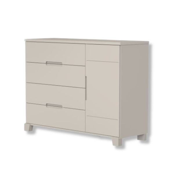 Com gavetas amplas e compartimento lateral com prateleiras, oferece espaço ideal para organizar roupinhas, acessórios e calçados do bebê com praticidade e estilo.